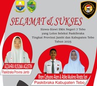 Azahra Kusuma Agustin siswa kelas X-E3 SMAN 7 Tebo lolos menjadi anggota pasukan pengibaran bendera merah putih untuk peringatan HUT kemerdekaan RI ke-80 Tingkat Provinsi Jambi.